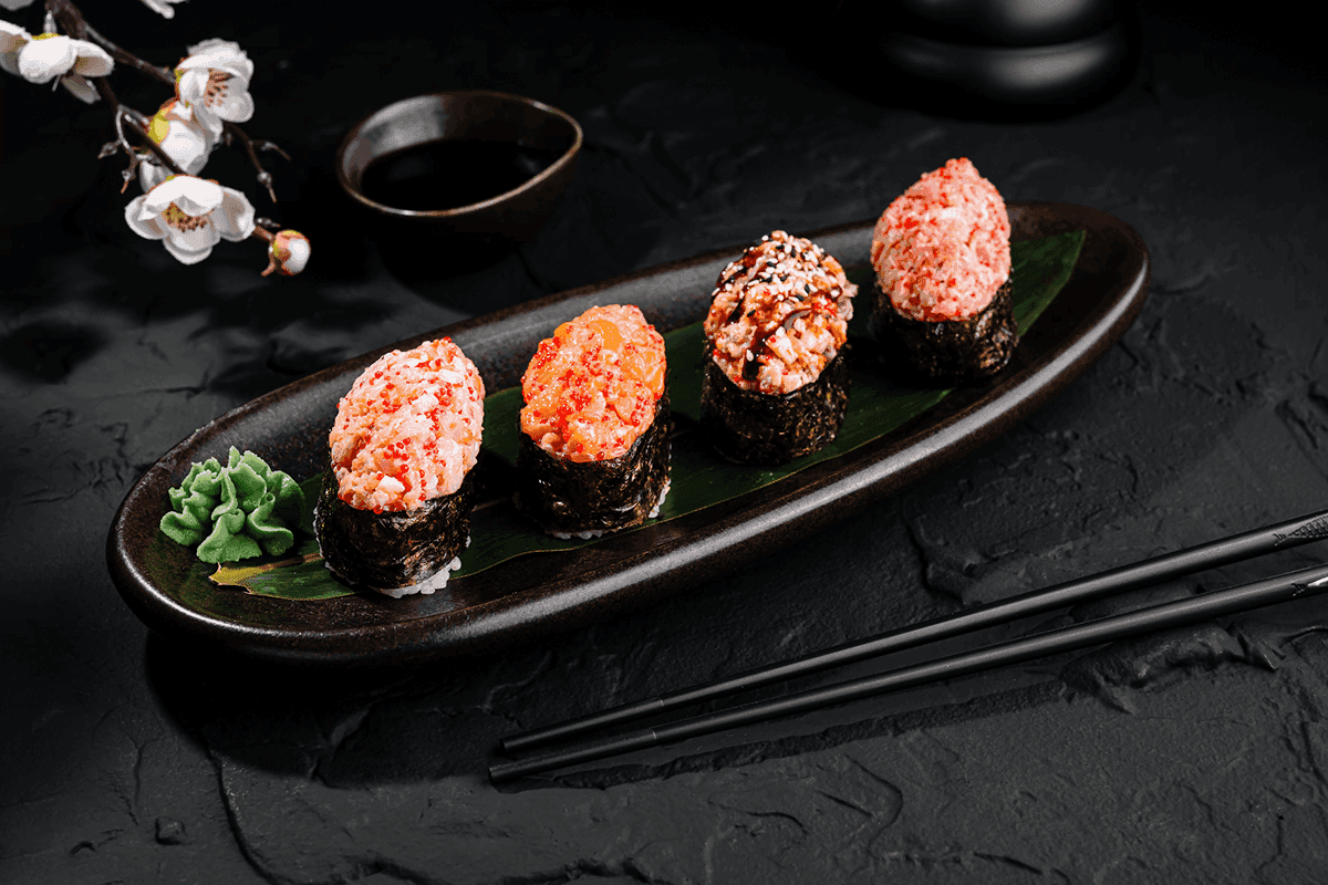 Categorie: Seturi Etichete: GunKan creveți, Gunkan somon, gunkan sushi, GunKan țipar, Gunkan ton, set Gunkan, гункан сет, суши гункан